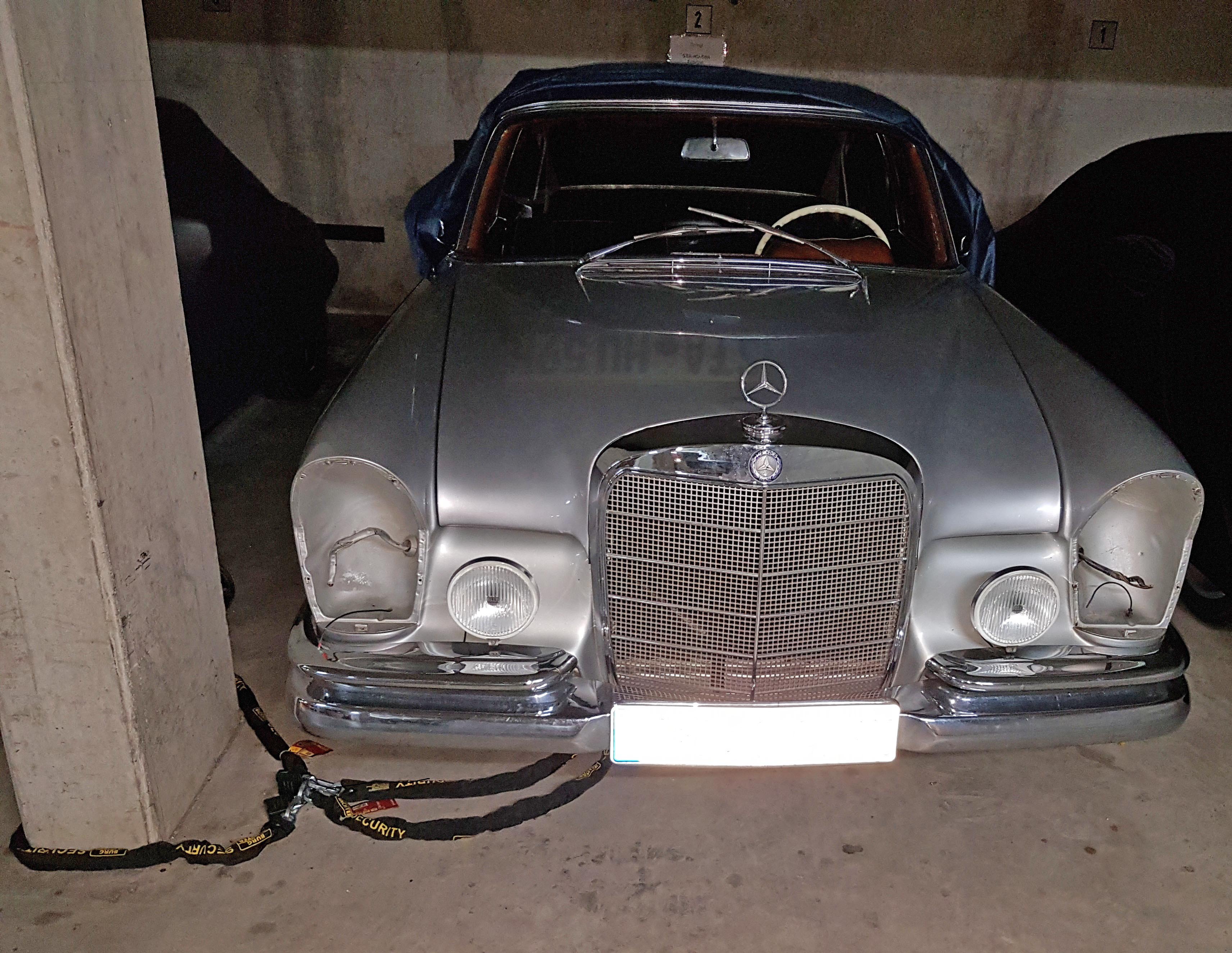 „Die Sicherheitskette und das Schloss kann ich nur empfehlen. Beide haben dem versuchten Diebstahl von Profis standgehalten“, ist Cornelius Riethmüller erleichtert. Verkraften muss er „nur“ den Diebstahl der beiden eleganten Doppelscheinwerfer. Die schraubten die Diebe ab und nahmen sie mit. Auch diese vergleichsweise kleine Beute dürfte auf dem Schwarzmarkt einen stattlichen Preis erzielen. Schließlich werden gut erhaltene Mercedes-Cabrios W 111 220 aus den 1960er-Jahren mit sechsstelligen Beträgen gehandelt. Dementsprechend hoch ist auch der Wert von Ersatzteilen.