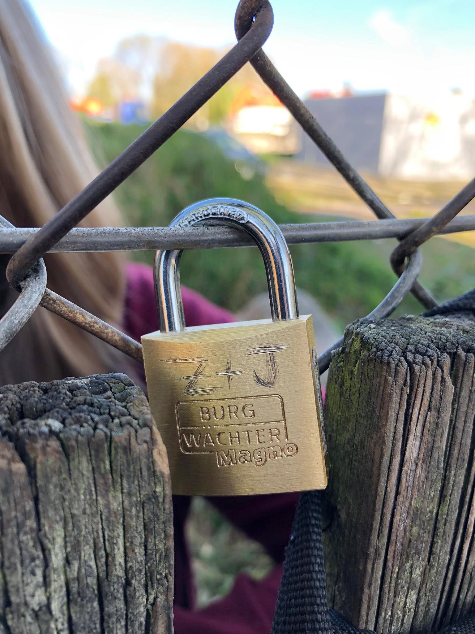 Auch Zoran musste die „angeordnete“ Trennung erst einmal verarbeiten. Aber er baute seine Verlobte mit liebenden Worten wieder auf: „An einem Nachmittag hat er dann am Grenzzaun ein Liebesschloss von BURG-WÄCHTER aus der Tasche geholt, in das er unsere Initialen geritzt hat. Für uns ist die Burg unsere Liebe, die vom Schloss – also dem Wächter – geschützt wird. Dieses Schloss steht für unsere grenzenlose Liebe. Und deswegen ist es egal, auf welcher Seite der Grenze wir uns befinden“, erzählt Jacqueline.